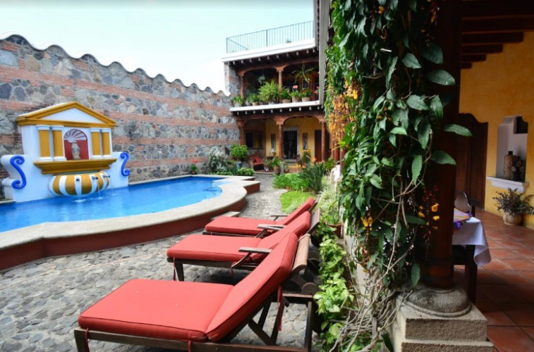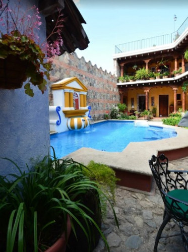 a sophisticated, high style, luxury hotel, is located in Antigua's best residential area just four blocks from the Art Gallery, Jade Museum, finest Restaurants, typical shops and furniture in town, but away from the commotion of the town centre.
