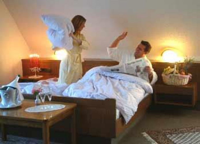 Unsere Komfortabel ausgestatten Einzel- und Doppelzimmer garantieren durch die ruhige Lage und bequeme Betten einen Erholsamen Schlaf für Groß und Klein. Und für all jene, die sich vor dem zu Bett gehen noch informieren möchten oder eine Kleinigkeit arbeiten müssen, haben wir in jedes Zimmer Satelliten-TV, Telefon, einen DSL-Internetanschluss, sowie einen Schreibtisch ausgestattet.