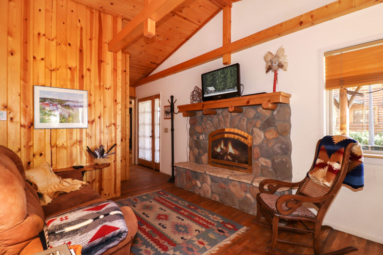 Located in the back garden behind the former Inn at Fawnskin, nestled in its own pine forest right across the street from the lake, this darling cottage has everything you need for a relaxing, quiet stay on the North Shore of Big Bear Lake. Just 5-10 minutes from shopping, skiing/boarding, boating, golf, hiking, fishing, this cottage is far enough away from the busyness of Big Bear, but close enough to enjoy its amenities when you desire to. A large master bedroom with ensuite large bathroom and jetted tub, and a darling second bedroom with its own private bathroom, gas log fireplace, and lake view, a full kitchen, and cozy living room will make you never want to leave.