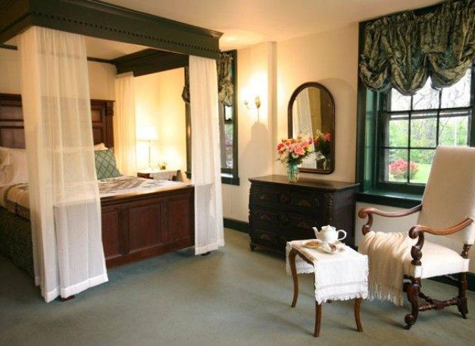 Cromwell Manor Inn Bed and Breakfast, with the distinction of being named one of the Top 10 Inns of New York, is an historic country estate on seven acres of romantic woodlands, lawns, and gardens in New York's Hudson Valley. Guests can visit nearby West Point, enjoy the spectacular scenery and quaint towns of the majestic Hudson Highlands, shop at the world-famous Woodbury Common Premium Shopping Outlet, spend an afternoon at The Storm King Art Center, or simply relax for a quiet weekend getaway. Romance awaits you at Cromwell Manor Inn. The main building, The Manor House, contains nine elegant guest rooms in a brick mansion built in 1820. The original home on the property, The Chimneys Cottage, dates back to 1764 and offers charming Colonial ambiance in four guest rooms. Hudson Valley's most romantic getaway