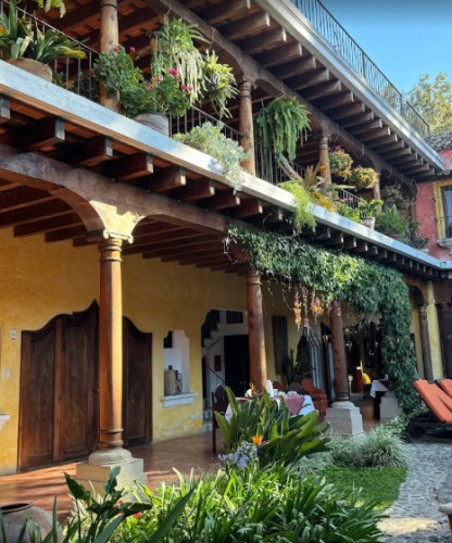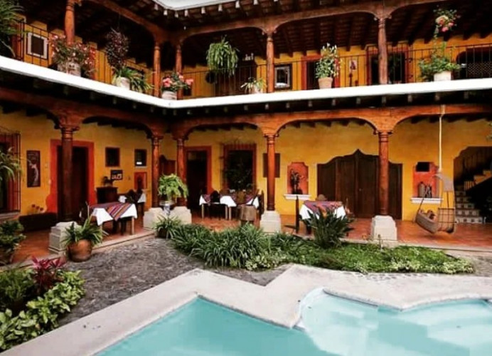 a sophisticated, high style, luxury hotel, is located in Antigua's best residential area just four blocks from the Art Gallery, Jade Museum, finest Restaurants, typical shops and furniture in town, but away from the commotion of the town centre.