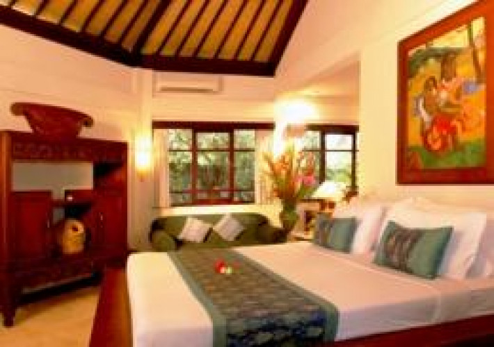 The Small Elegant Hotel Vila Lumbung is an exotic Balinese boutique style resort with 30 units (14 free standing two storey villas each featuring well appointed garden floor rooms and luxurious rooftop floor rooms as well as 2 deluxe villas, each with 3 bedrooms, large living area, kitchen and private garden). All villas are in the Lumbung style with typical Balinese thatched roofs, built around a gorgeous 2-levels swimming pool with waterfall, Lotus pond and cave and surrounded by masterly designed lush tropical gardens. The Small Elegant Hotel Vila Lumbung has a beautiful restaurant with many garden terraces and an adjacent pool bar, an art shop, a spa studio, a tour desk, a pool table room, Business Centre and Hot Spot/ WiFi Fast Internet Access. It is located just off Seminyak, a 15 minutes drive by car from Kuta/Legian and only 800 meters away from the quiet Petitenget/Kerobokan beach.