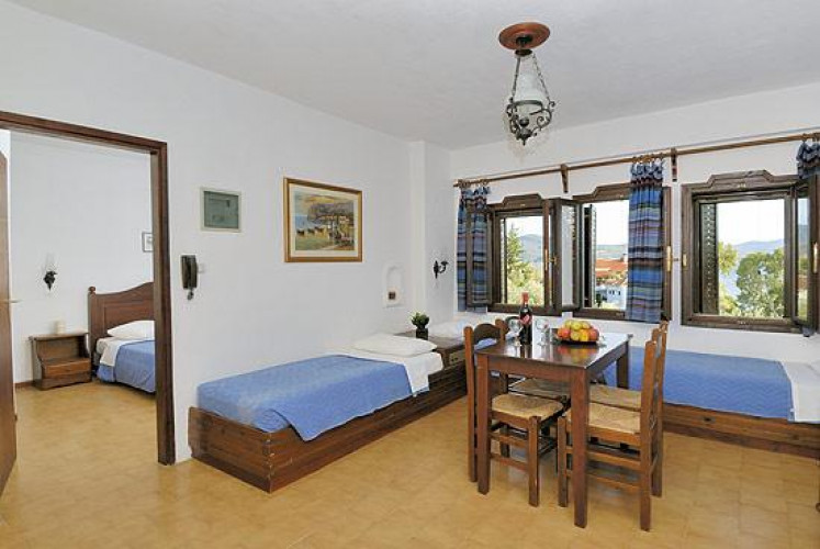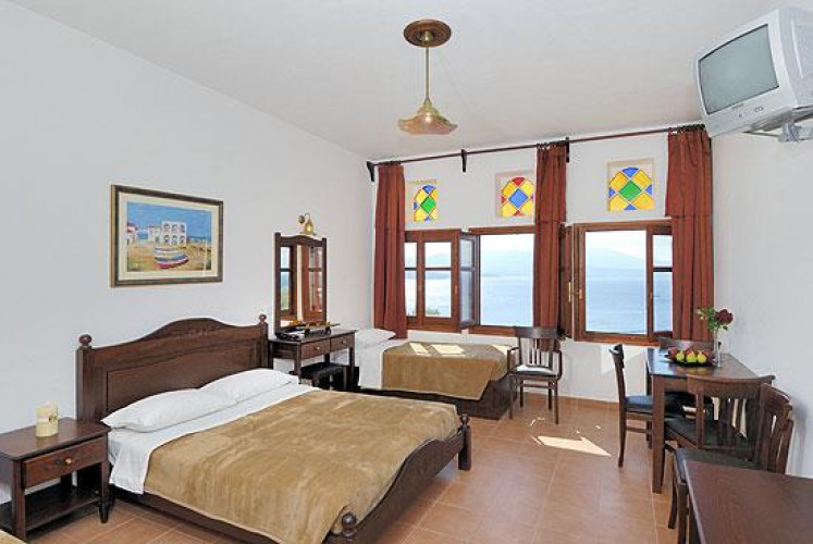 • Enjoy tasty appetizers at the restaurant “Amvrosia” and enjoy the idyllic atmosphere at the bar “Iris” next to the sea. You can also enjoy: swimming-pool, spa, hydro massage, sauna, tennis, yoga, garden chess, gym, children's swimming-pool, playground, riding, bicycle, water sports, fishing, Greek nights, boat - trips with a caique or boat at the round islands.