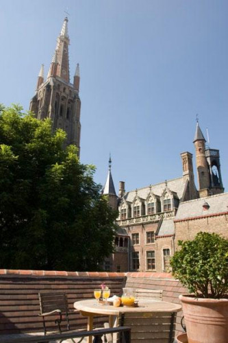 One part at water level, with wooden gable and leaded windows, preserves the medieval heritage and another part of the 16 th century is situated in a quiet street with cobble stones. Between both houses a sunny waterfront terrace emerges, dominating the rooftops of Bruges, from which you'll enjoy a breathtaking view over the most characteristic monuments of Bruges (Our Lady's, Palace of Gruuthuse, …)