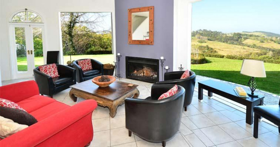 Just five minutes from Matakana Village or fifteen minutes east of Warkworth Township and an easy hour north of Auckland City. CASTLE MATAKANA Luxury B&B Accommodation and Vineyard has spectacular architecture designed so that all rooms enjoy sweeping rural and sea views across the rolling Matakana countryside to the islands of Kawau Bay and the Hauraki Gulf beyond. The pasture, native bush and estate vineyard setting is in 16 acres of privacy and tranquility on the exquisite Tawharanui Peninsula in the heart of Matakana Coast Wine Country. CASTLE MATAKANA wine is produced from our estate vineyard and is available with pre-dinner hors d'oeuvres and at the dining table with fine dining.