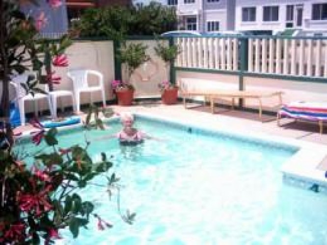 Each unit is a fully equipped efficiency with dinette. Everything a family of four needs for light cooking. Each has color cable television with HBO and air conditioning. A washer and dryer are also available for guest use. The heated pool is equipped with a jacuzzi bench.