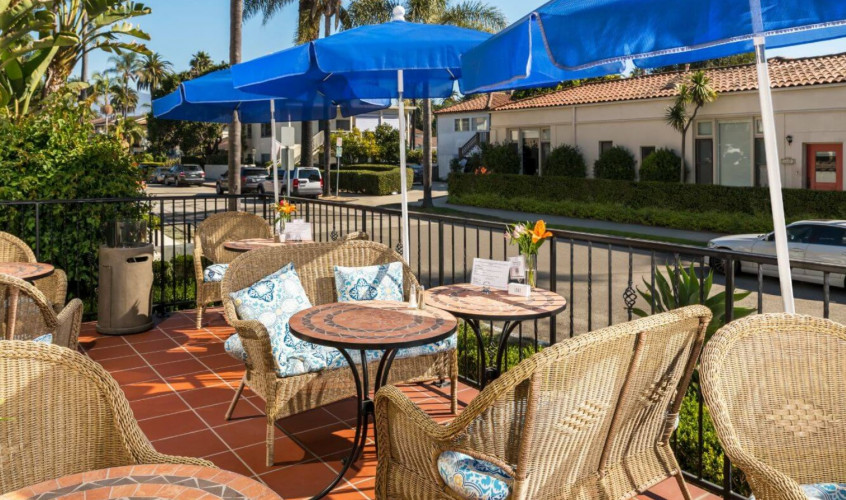 Located in the popular West Beach neighborhood of Santa Barbara, the Eagle Inn is a comfortable bed and breakfast-style boutique hotel by the water. The marina and beach are just a 3-minute walk away, and Stearn’s Wharf, The Funk Zone and State Street, Santa Barbara’s main shopping street, are just a 10-minute walk. Each guest room is unique and spacious with quality furnishings and details. Our Santa Barbara and Santa Rosa Casitas feature fireplaces, two person tubs and private patios and are the perfect choice for a Santa Barbara honeymoon retreat. All of our hotel rooms are clean, comfortable and well-appointed. Many of our rooms feature large, two person tubs, fireplaces and balconies which are ideal for romantic evenings or weekend getaways. The inn with its included daily breakfast service is popular with both tourists and business travelers alike, who are looking for comfortable Santa Barbara hotel accommodations.