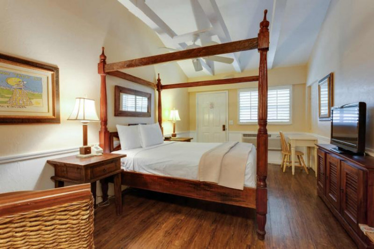 The Lemon Tree Inn provides bright, cheery guest rooms and a lush garden courtyard with a sparkling, heated pool. Many of the guestrooms are furnished with teak four-poster beds and the St. Croix Suite features hardwood floors, a main and private entrance, two bathrooms, a living room and a kitchenette. All guestrooms feature plantation shutters and are painted with the rich hues of the tropics. Artwork by local and Caribbean artists compliments the uniquely designed rooms.