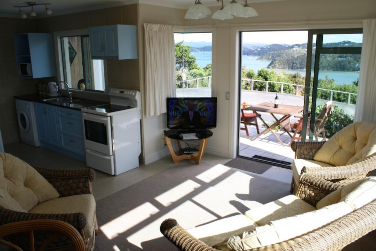 The Swallows Nest offers warmth & comfort in the winter months & air conditioned, cool ambiance in the wonderful long summers. Perched high on a hill with stunning sea views in 2 directions over The Bay of Islands & Paihia.