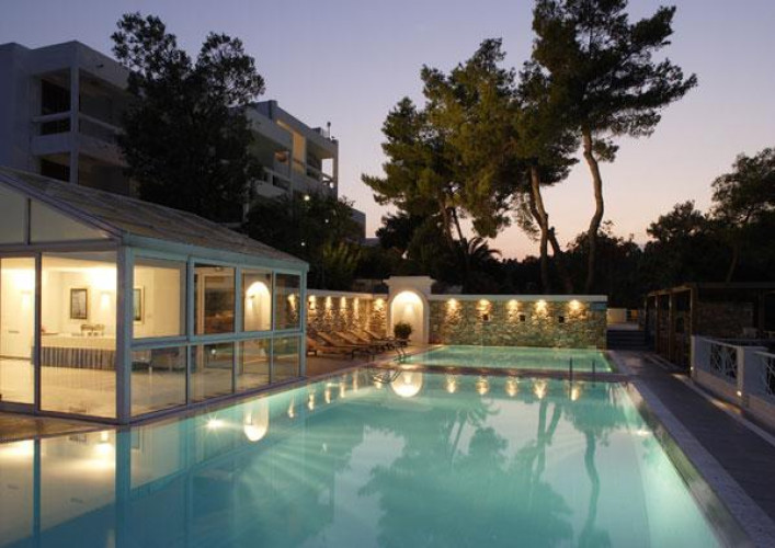 Sapphire waters, emerald pine trees and topaz blue skies are the colours surrounding Hotel Cape Kanapitsa of Skiathos. On a private peninsula of 8-acre property overlooking the Aegean and the magnificent Bay of Kanapitsa, Hotel Cape Kanapitsa of Skiathos occupies what is undoubtedly one of the best positions on the island. Built high on a headland between two wide bays in the grounds of the pretty Cape Kanapitsa Hotel, they are set in abundant semi-tropical gardens with an attractive seawater swimming pool and bar overlooking the Aegean.