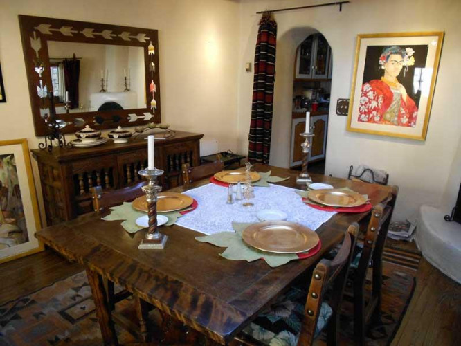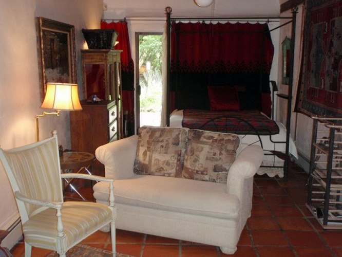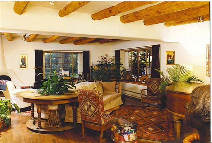 Touchstone Inn is a historic adobe home bordering Taos Pueblo Lands and is a favorite destination for Taos lodging and Taos Hotel Accommodations. We have guest rooms available on a long-term basis or as nightly rentals to suit your personal taste with optional vegetarian gluten-free breakfast available. Our living room and dining room are communal spaces enjoyed by our residents and guests. Take pleasure in writing a postcard or playing the baby grand. Borrow a book, or enjoy Touchstone Inn’s art collection which is superb. Sit for a while in front of the fire and let us tell you about the history of the house and our close connection to Mabel Dodge and Tony Luhan.